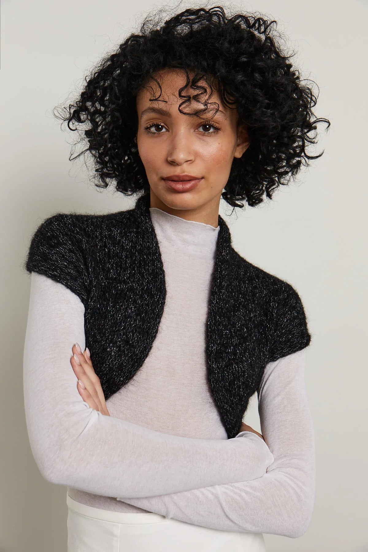 Le subtil mélange de fibres de coton et d'alpaga mohair confère à ce boléro un look naturellement élégant. Sa coupe légèrement ajustée et ses finitions impeccables ajoutent une touche de sophistication à votre tenue, que vous le portiez avec une robe de soirée ou un ensemble décontracté.