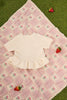 Les manches courtes ajoutent une touche de fraîcheur tout en permettant aux bras du bébé de bouger librement. Le volant bas, finement froncé, offre un petit charme supplémentaire, flottant doucement avec les mouvements de la petite fille. Le dos de la bralette est complètement ouvert, ce qui le rend facile à enfiler, et se ferme avec de petits boutons-pression discrets mais efficaces pour maintenir la tenue en place.