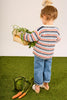 Ce cardigan multicolore est une véritable explosion de couleur et de douceur pour les bébés de 6 à 36 mois. Soigneusement confectionné avec un crochet de taille 3 en coton 100% biologique, ce cardigan révèle la beauté de ses rayures avec une subtile alternance de brides, créant un motif dynamique et joyeux qui capture l'esprit de l'été.