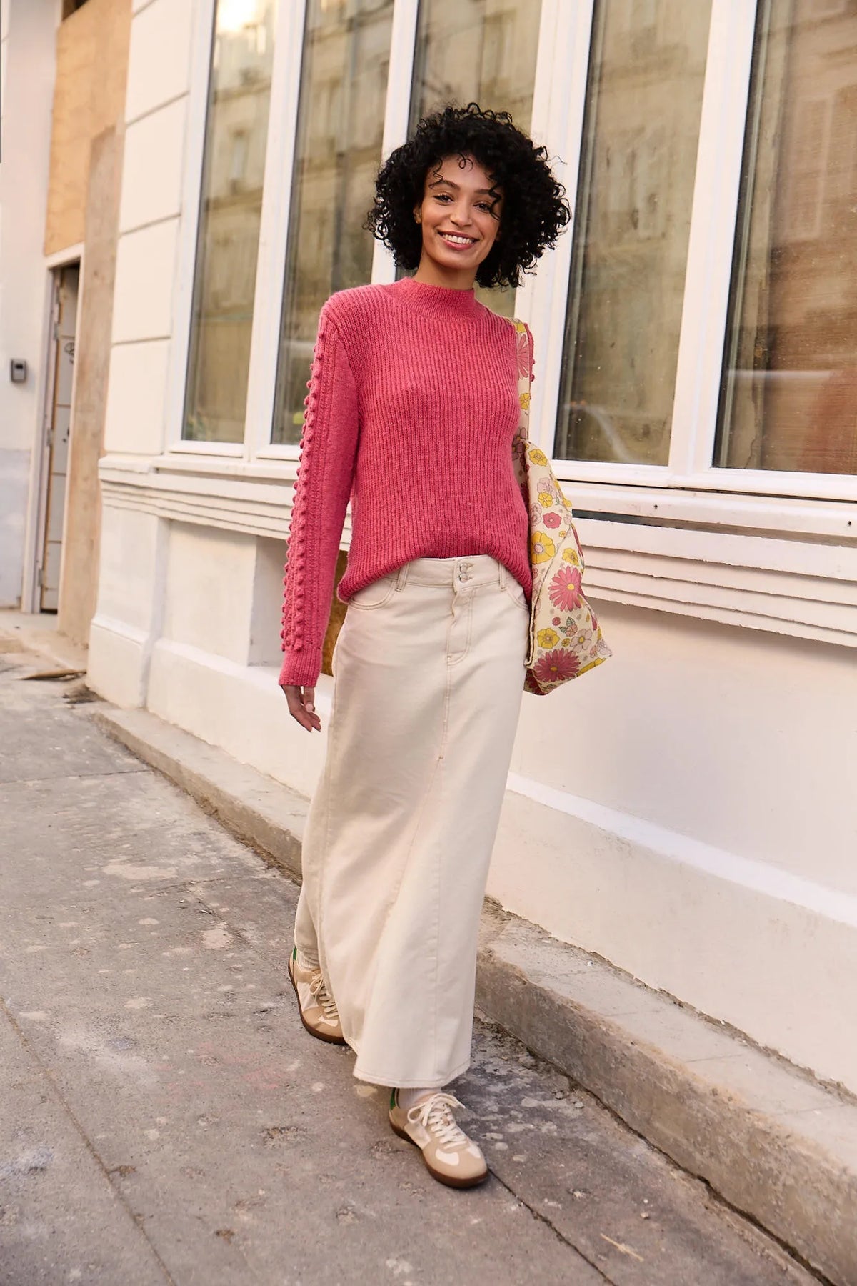 Nous adorons ses manches fantaisie ornées de points boules, ajoutant une texture unique et un intérêt visuel à votre tenue.