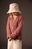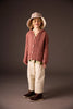 Tricoté avec le fil LOUISE, il est réalisé avec des aiguilles de 4,5 mm pour des côtes 2/2, du point blé, du point mousse, du point torsade et du point fantaisie. Une aiguille à torsade est essentielle pour maîtriser les reliefs, tandis que la fermeture se fait avec 5 boutons, qui ajoutent une touche ludique et naturelle.