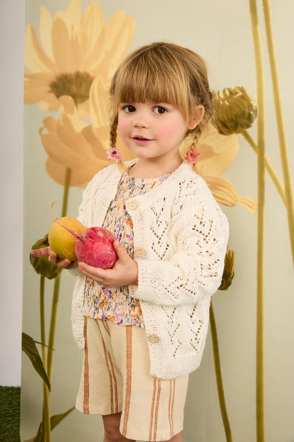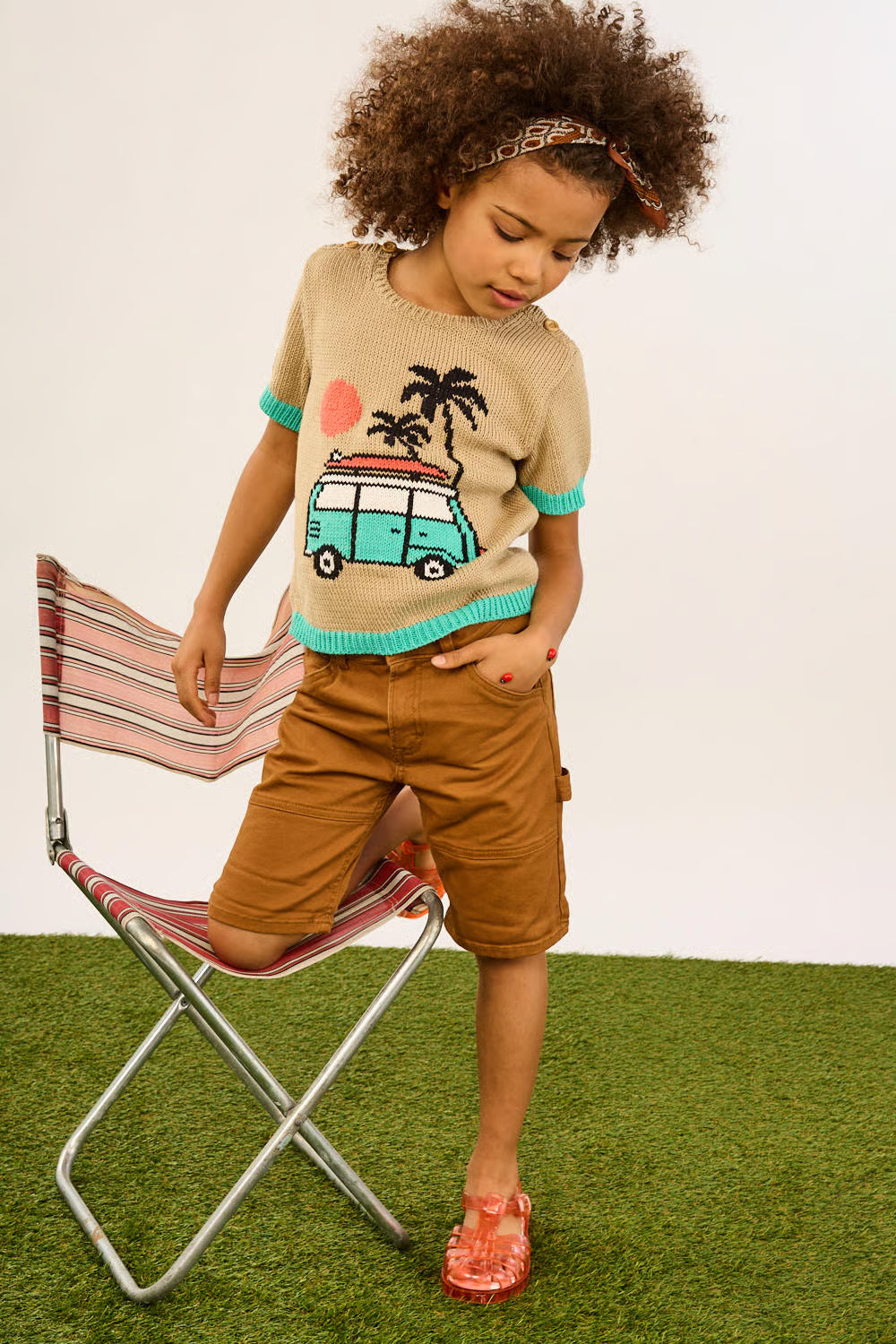 Pull à manches courtes Eléonore tricolore avec point fantaisie