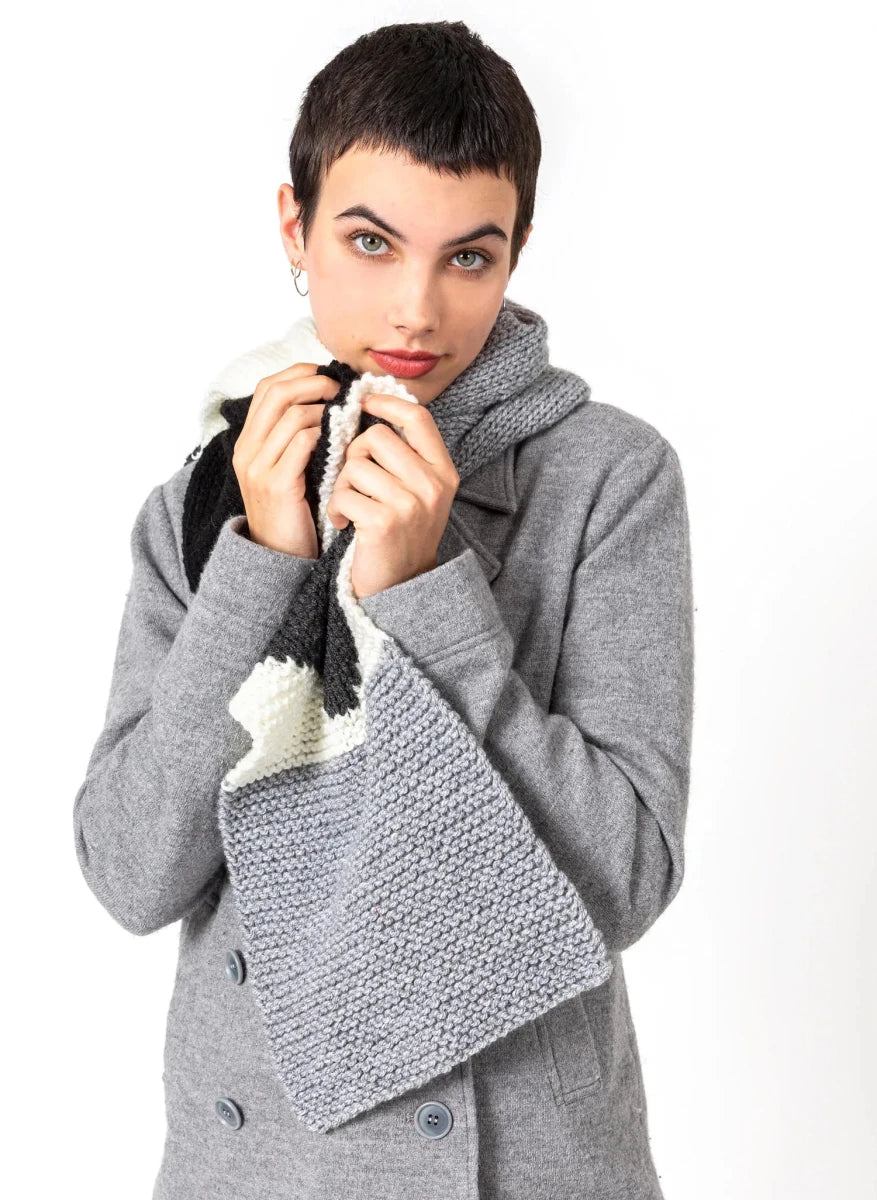 Points employés : point mousse, jersey endroit, jacquard. Une grille détaillée vous permettra de suivre le jacquard pas à pas.